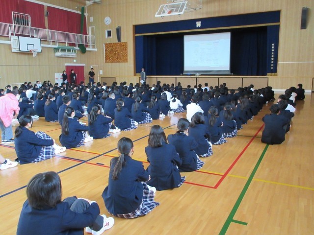 校長先生からは、新巽中学校の生徒行動指針(しんたつの中で増えてほしい行動)についての話がありました。全校生徒が、目標を達成できるように努力する、また、みんなで支え合えるようにがんばりましょう。その後、生徒指導主事の先生からは、地域での過ごし方についての話がありました。すべての生徒が真剣に話を聞いていました。