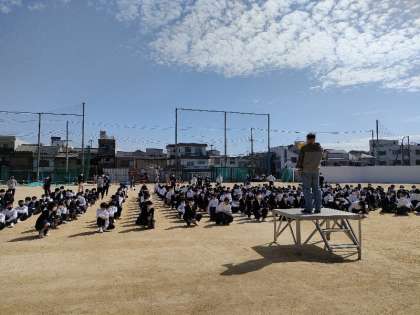 2時間目に1〜5年生 6時間目に6〜9年生の避難訓練がありました