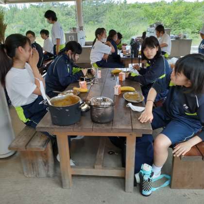 7年生 一泊移住の様子 いただきま〜す