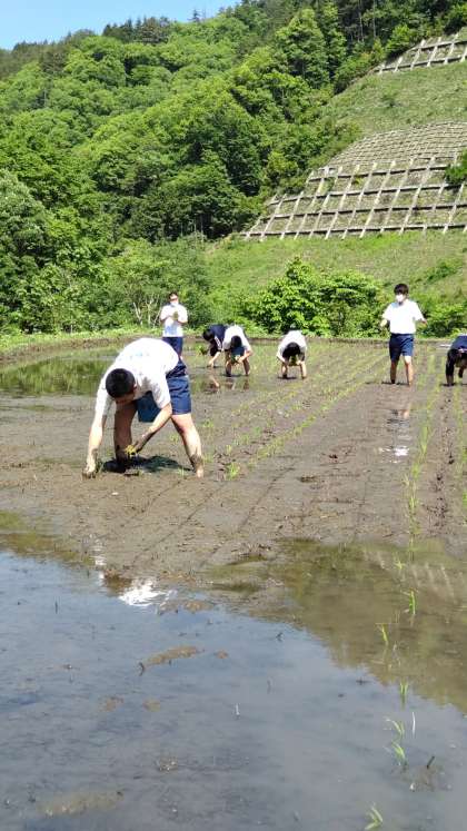9年3組 田植え体験です。美味しいお米になりますように。
