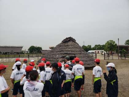 円形と方形、2種類の住居どちらが古いのか等を学んでいます。