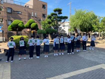 風紀委員会は本日より朝のあいさつ運動の際に、手作りのボードを掲げています。