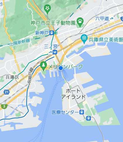 只今、三ノ宮周辺、メリケンパークを通過中です。一度一般道に下りて、再度高速道路に入ります。