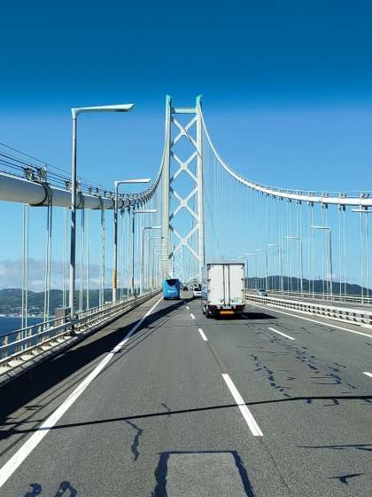明石海峡大橋を通過中です。この後パーキングでトイレ休憩です。ほぼ予定どおりに動いています。