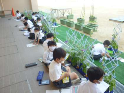 毎日朝に水やりをしたり、休み時間も観察したりと、とても大切に育てている「あさがお」の開花にお喜びの様子でした。ひとつふたつと花が開くたびに嬉しそうにしています。