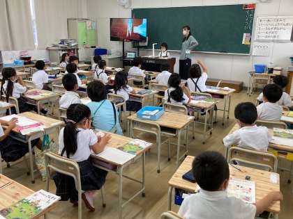 本日の授業風景は1~3年生です。学校探索のクラスもありました。