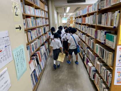 クラス毎に生活科の学習で生野図書館ヘ見学に行きました。