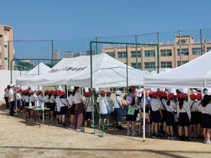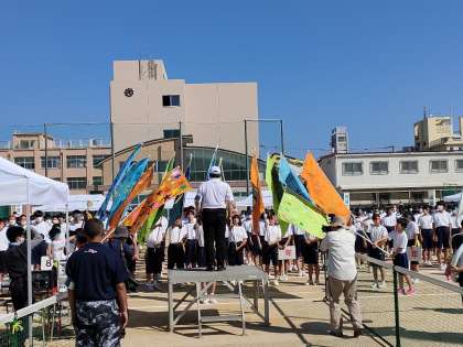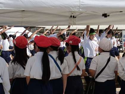 体育大会 選手宣誓〜体操 見学の前期課程児童たち