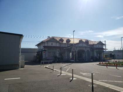 浜寺公園駅に到着。駅は改装中で、旧駅舎は今はカフェとして活用されています。