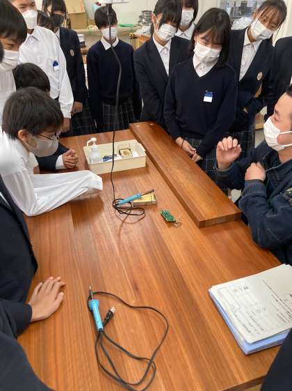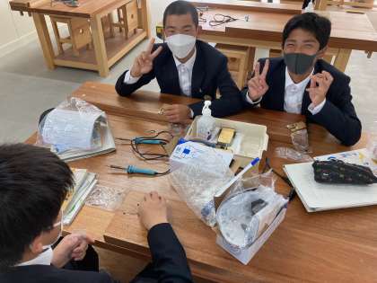 本日の授業風景プラスです。 8年生のハンダゴテデビューです。