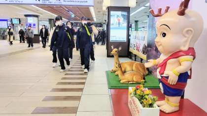 奈良駅ではせんとくんに迎えられ、班活動のスタートです。