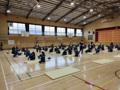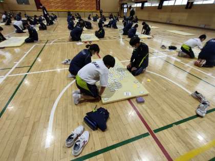 百人一首大会が開かれ、体育館は熱気に包まれていました。