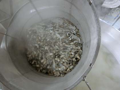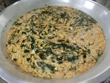 給食で使われるだしは、けずりぶしとだしこんぶの合わせだしをよく使用しますが、今日のみそ汁は、にぼしでとっただしを使用しています。具材は、にんじん、だいこん、えのきたけ、わかめ、うすあげでだしのにぼしをほんのり感じられるみそ汁でした。