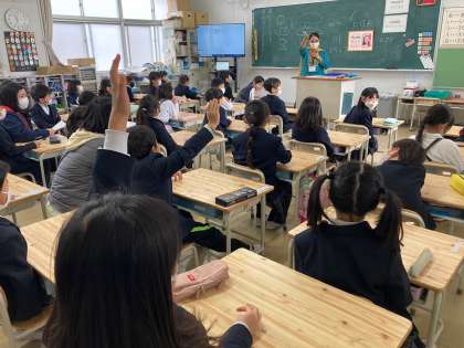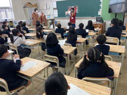 本日の授業風景は1~3年生です。1年生はネパールの??先生方による出前授業でした。