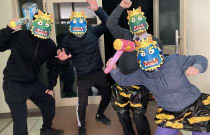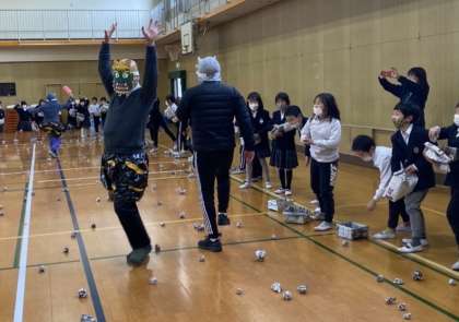 節分行事の豆まきをしました。鬼も登場しました。鬼たちは、『友達をいじめてたらまた来るぞー』『夜遅くまで起きてたらまた来るぞー』と、言いながら、帰っていきました。かっこいい3年生になれるよう、残りの日々をがんばろう!!