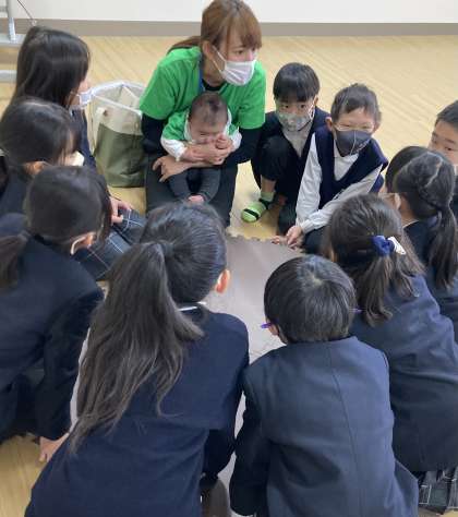 地域に住んでる赤ちゃんとお母さんが来校され、産まれたときのお母さんの気持ちとか、どれだけ大きくなったかを教えてもらいました。小さい赤ちゃんに、優しい顔で接している2年生が可愛かったです。