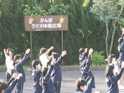 ラジオ体操広場で体操