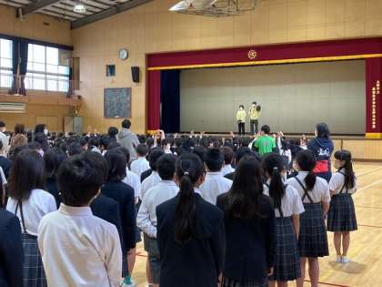 今朝は生野区役所の方が来られ、防犯、自分の身は自分で守ること、自転車マナーや交通ルールを守ることについてのお話がありました。