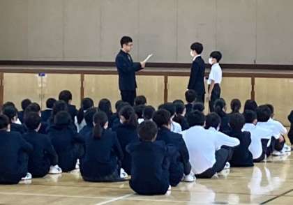 本日朝の7年生の学年集会では、二泊移住のオリエンテーリングの表彰がありました。
