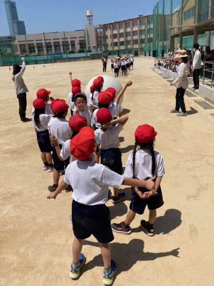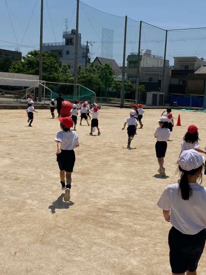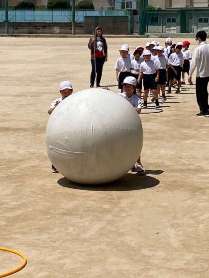 2年生は運動会の大玉転がしの練習です。元気いっぱいです。