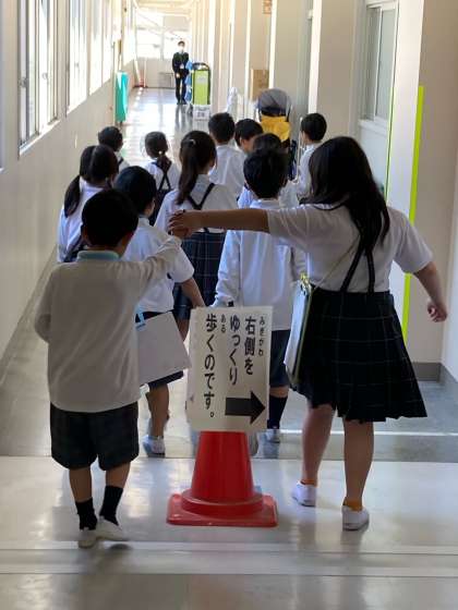 1年生のみなさん、2年生のお兄さんお姉さんに連れられて学校を探検することができましたね。広い学校ですが、少しずつお部屋を覚えていきましょうね。