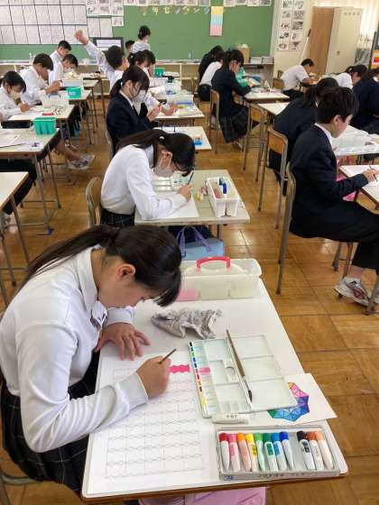 8年生は(上)理科(中)数学(下)美術の授業です。