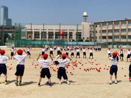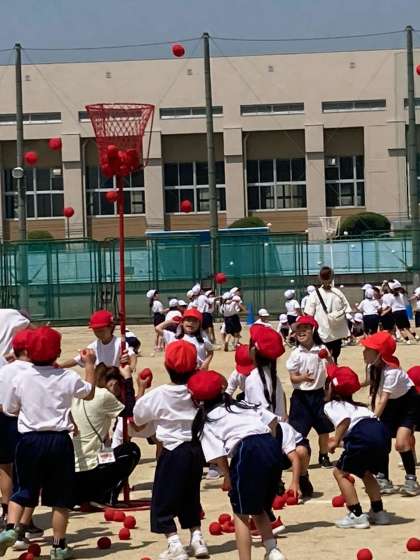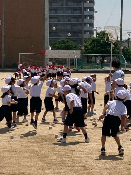 1年生は運動会の練習です。皆んな楽しそうに練習していました。