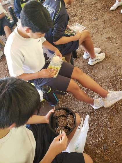 修学旅行 お弁当 公開日 2023/05/17 更新日 2023/05/17 お知らせ アドベンチャーパーク、ジップライン、それぞれを楽しんできた子ども達は、少し遅い目のお弁当タイムです。 食事の後は、アドベンチャーパークとジップラインが入れ替わり楽しみます。 いいね(0)