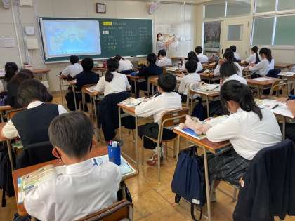 7年生は(上)数学(中)社会(下)英語です。