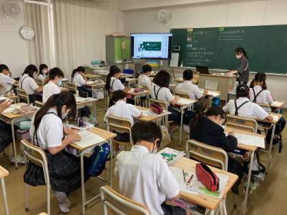 5年生は全クラス算数の授業です。各クラス、小数で割る計算の仕方を学習中。