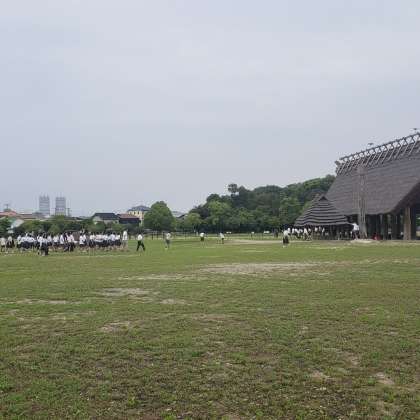 生野区ではゲリラ豪雨のようですが、こちらは曇りの様相です。子ども達は一斉に「だるまさんが転んだ」大会を楽しんでいます。
