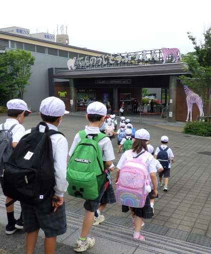 小学校最初の遠足となる1年生。出発の時はお天気が心配されましたが、動物園では屋内、屋外と展示を見る順序を調整しながら活動しました。新しくできたペンギン・アシカ舎では大きな水槽越しに見えるペンギンやアシカに大興奮の様子でした。しばらくすると雨もやみ、爽やかな風が吹く中、たっぷり園内を満喫することができました。お昼はみんなと楽しくお弁当やおやつを楽しみました。てるてる坊主にこめたみんなの思いが通じ、とても楽しい遠足となりました。