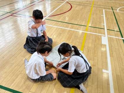 3年生 お楽しみ会 その4 公開日 2023/06/30 更新日 2023/06/30 お知らせ 3番目の競技は、「新聞紙を長〜くちぎって対決」です。 題名の通り、グループで協力しながら制限時間内にどれだけ長くちぎることができるかを競うゲームです。 1位のチームは10m近く長くちぎることができていました。 ジグザグにちぎっていくことで、とても長くちぎることができたそうです。 よく考えて挑戦できました。 いいね(0)