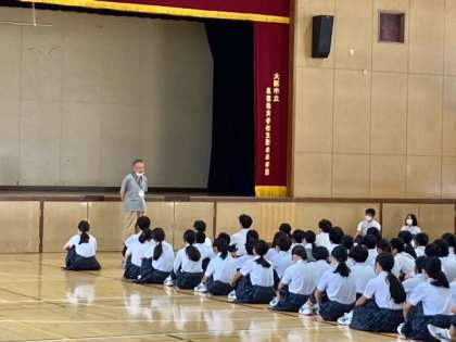 本日の7年生の学年集会では、福西先生より「どんなことでも、一生懸命打ち込んでいたら気持ちがいい!」とお話がありました。