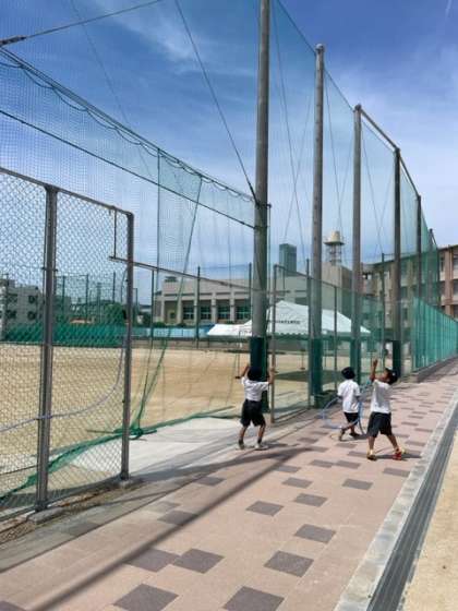 熱中症対策として運動場にミストが設置されました。子どもたちは休み時間、気持ちよさそうに遊んでいました。