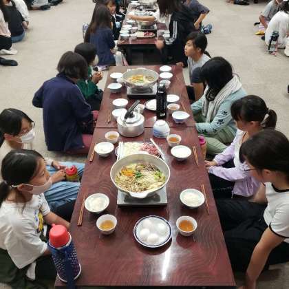 代表の子どものいただきますの挨拶と共に「いただきます」の大合唱、おなかが空いているのか、一斉に素早く作り始めます。美味しくできるでしょうか。