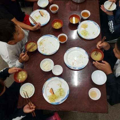 朝食では、お味噌汁が大人気です。何度もおかわりしています。