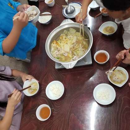 夕食です。いただきますから15分、みるみる鍋の中身が減っていきます。ご飯のおかわりも多いです。