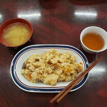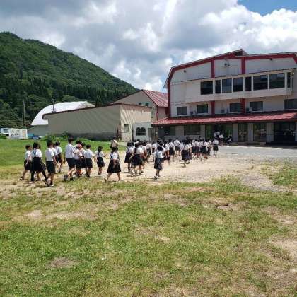 標準服に着替えて、学年全体での記念撮影をした後、いよいよハチ高原での最後の食事です。メニューは炊き込みご飯と豚汁です。