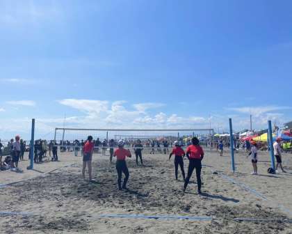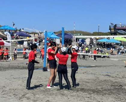 8月17日(木) 全国中学生ビーチバレーボール大会 予選グループ戦、本校女子バレー部は福岡県代表の仲津中学校と対戦。見事、勝利しました!