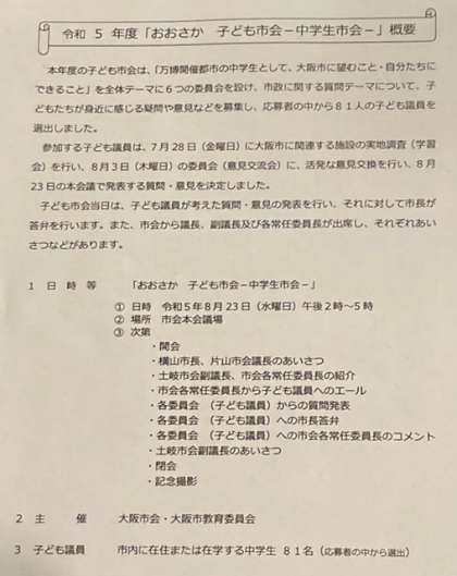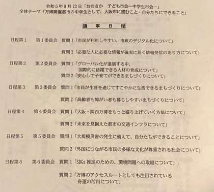 8月23日(水) 大阪市内の中学生から選ばれた子ども議員81名による「おおさか子ども市会〜中学生市会〜」が大阪市役所の市会本会議場で開催されました。