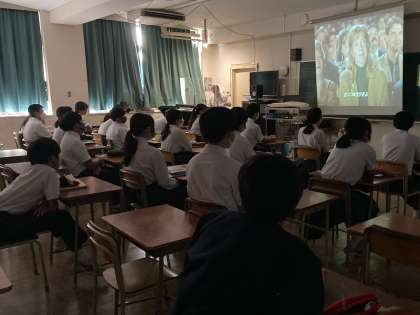 9年生の授業風景です。 (上)音楽、ミュージカル鑑賞(中)道徳です。