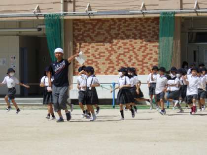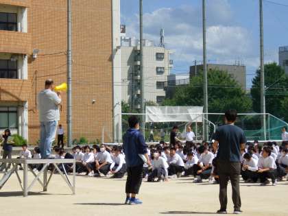 大阪880万人訓練に全校児童生徒も参加しました。防災無線の合図とともに訓練訓練の開始です。身の安全を確保した後、放送の指示で速やかに運動場へ避難しました。どの子も真剣に行動できていました。