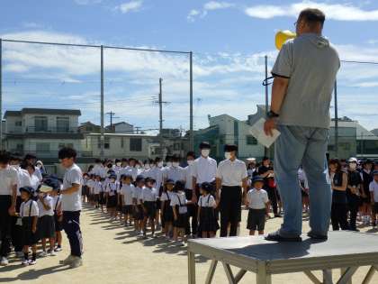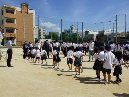 大阪880万人訓練 その2 公開日 2023/09/01 更新日 2023/09/01 お知らせ 続いて大津波警報の合図で、校舎の上層階へ避難です。6・9年生が1・2年生の避難をサポートしてくれました。お兄さん、お姉さんが手をつないで連れて行ってくれたおかげで、階段での移動もスムーズにできました。 いいね(0)