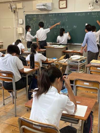 9月22日 金曜日 授業風景1 公開日 2023/09/22 更新日 2023/09/22 お知らせ 7年生の授業風景です。 (上)数学:方程式の計算 (中)国語:竹取物語 (下)美術:絵文字です。 いいね(0)