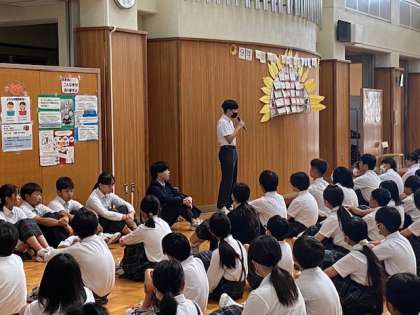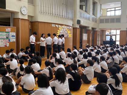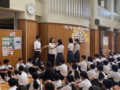 9月25日(月)_全校集会(6〜9年生) 公開日 2023/09/25 更新日 2023/09/25 お知らせ 9月25日(月)の全校集会では、理科の研究、陸上部、水泳の表彰が行われました。また、教育実習生の終了の挨拶がありました。 また、生徒会役員からも、今週金曜日に行われる体育大会に向けて、一人ひとりが力を出し切り、精一杯頑張りましょう!と話がありました。 いいね(0)