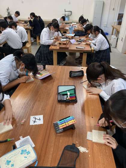 9年生は文化発表会に向けて校歌のレリーフ作りを始めています。さすが9年生!みんな一生懸命に作業をしていました。完成が楽しみですね!
