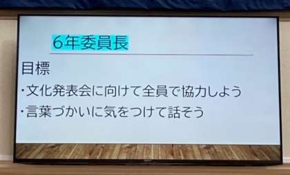 今月の目標(6〜9年生) 公開日 2023/10/13 更新日 2023/10/13 お知らせ 東館のホールに2学期からモニターを設置しています。生徒会からの呼びかけや体育大会を振り返ってなど、その時に合わせた掲示を行っています。 本日より、先日行われた生徒議会を受けて、生徒会より、各委員会の「10月の目標」を映し出しています。 中間テストも終わり、文化発表会も近づいていますが、それぞれが意識を高く持って、毎日の学校生活を送りましょう! いいね(0)