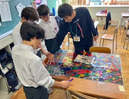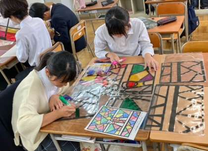 文化発表会に向けて(8年生) 公開日 2023/10/17 更新日 2023/10/17 お知らせ 来週27日(金)は文化発表会です。1年生から9年生の全校生徒の行事のため、現在、生野未来学園では文化発表会に向けて、取り組みが進められています。 8年生の学年展示として「ステンドグラス作り」に取り組んでいます。選ばれた原画を見ながら、黒枠をきれいに切り取ったり、色をつけたりと制作に励んでいました。完成が楽しみです! いいね(0)