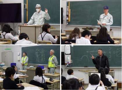 取り組みの一貫として、ゲストティーチャーに校区内の4つの地域の地域防災リーダーの方々をお招きし、学習に取り組みました。
